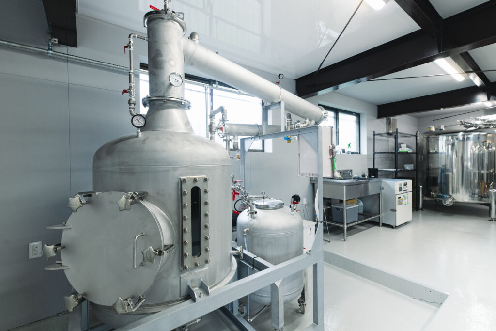 蒸留には減圧・常圧どちらにも対応できるオーダーメイドの国産ステンレス製蒸留器を使用。ボタニカルごとに個別で蒸留し、後からブレンドする製法で、素材ひとつひとつの香りを丁寧に引き出しています。川内村の豊かな地下水を仕込み水に使っているのも、この蒸留所ならではの特徴です。